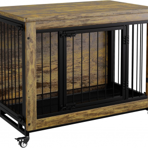 Dog Crate Furniture with Cushion, Wooden Kennel Table with Double Doors, Indoor Dog House, Small/Medium/Large/Extra Large Size, 27.2″ L, Rustic Brown