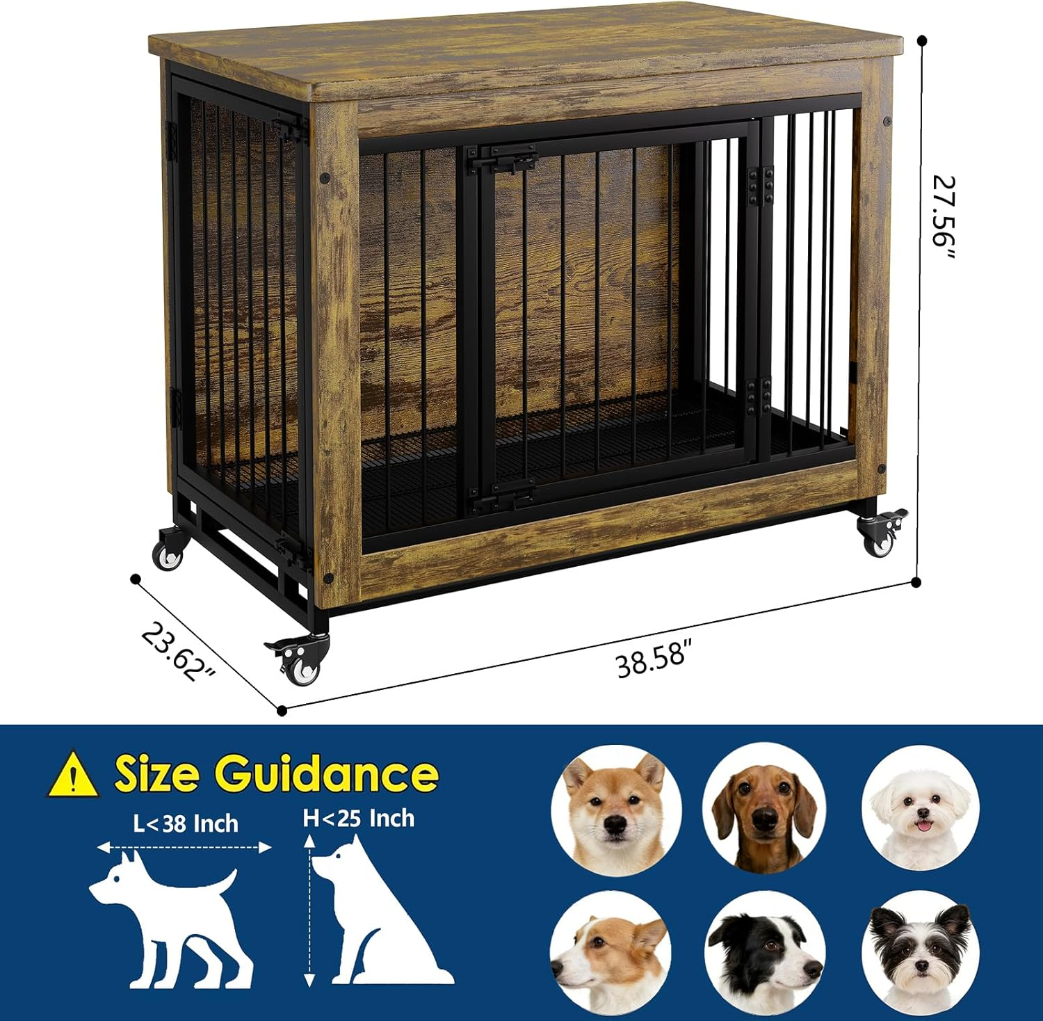 - 【Sturdy & Chew-Resistant Build】 Constructed from solid wood panels and reinforced with carbon steel bars, offering lasting durability and safety for small to medium dogs.
